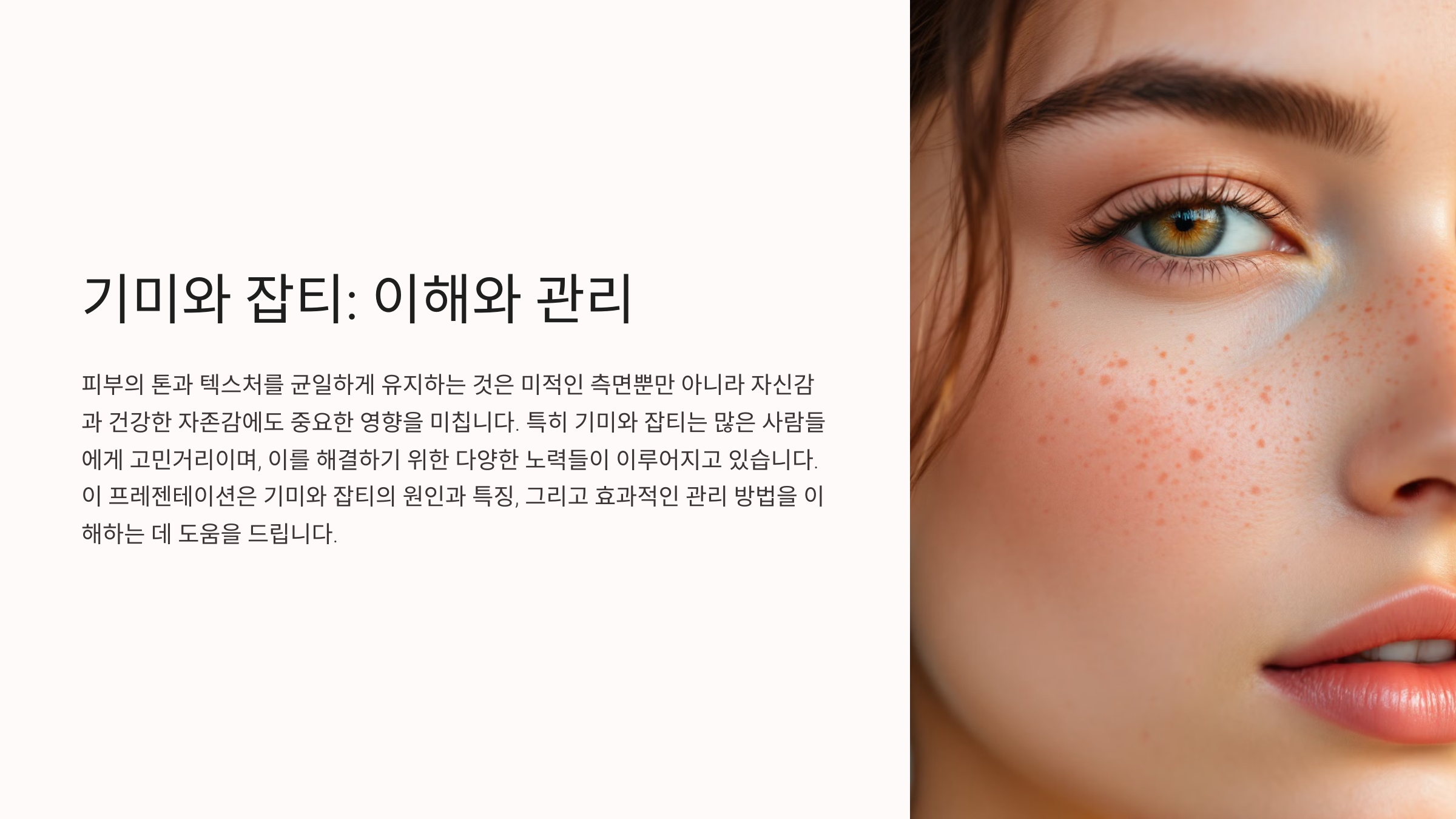 기미와 잡티는 외부 환경과 피부 노화 등 다양한 요인으로 인해 발생해요. 이런 문제는 피부 톤을 칙칙하게 만들어 자신감을 떨어뜨리기도 하