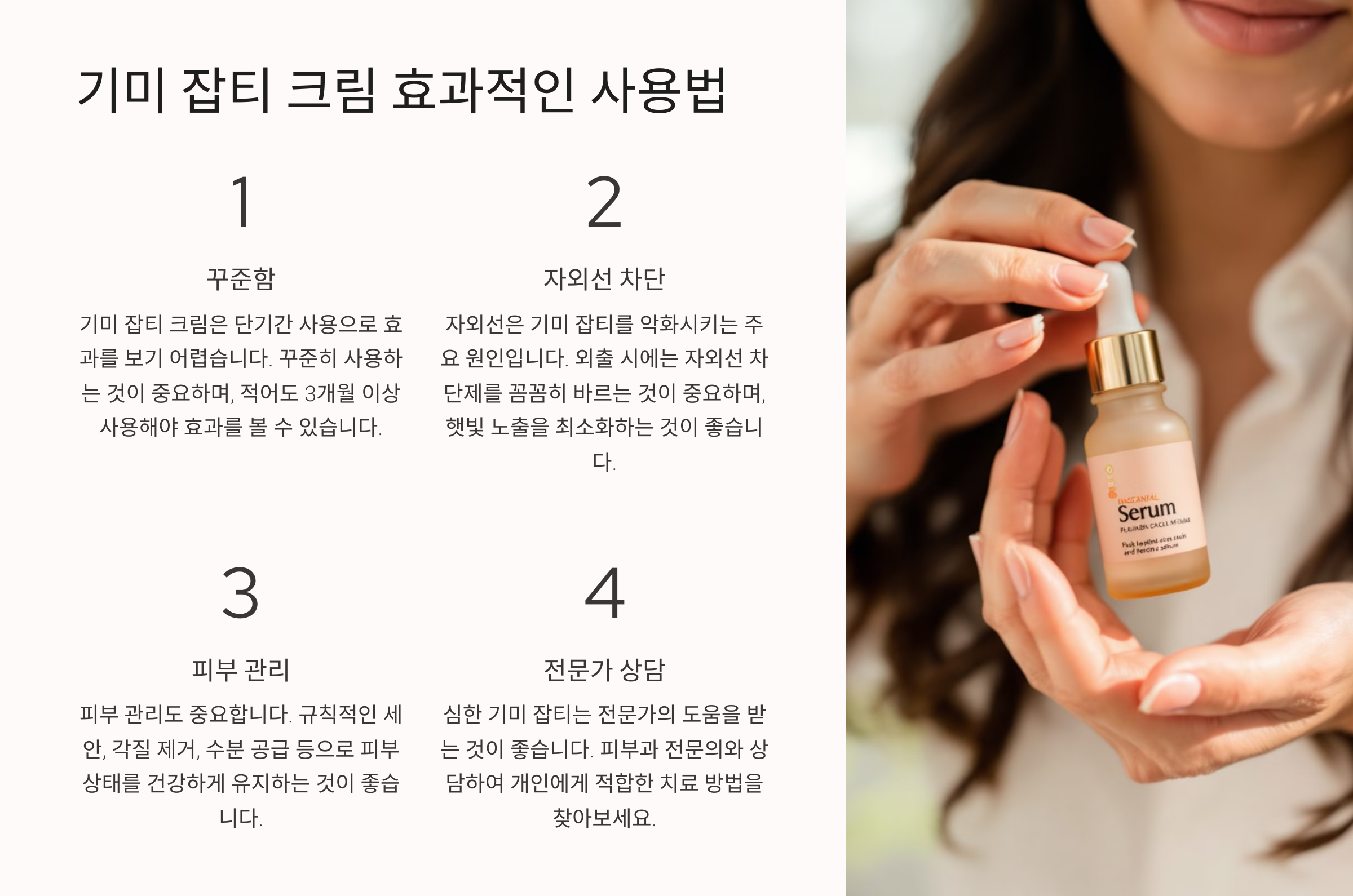 기미 잡티 크림의 효과를 극대화하기 위해서는 올바른 사용법이 중요해요. 첫 번째로는 꾸준함이에요. 최소한 4주 이상 지속적으로 사용해야 눈에 띄는 개선 효과를 볼 수 있어요.