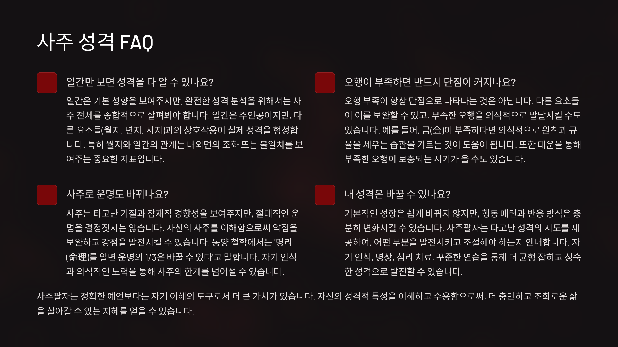 Q8. 사주로 미래의 성격 변화도 예측할 수 있나요?