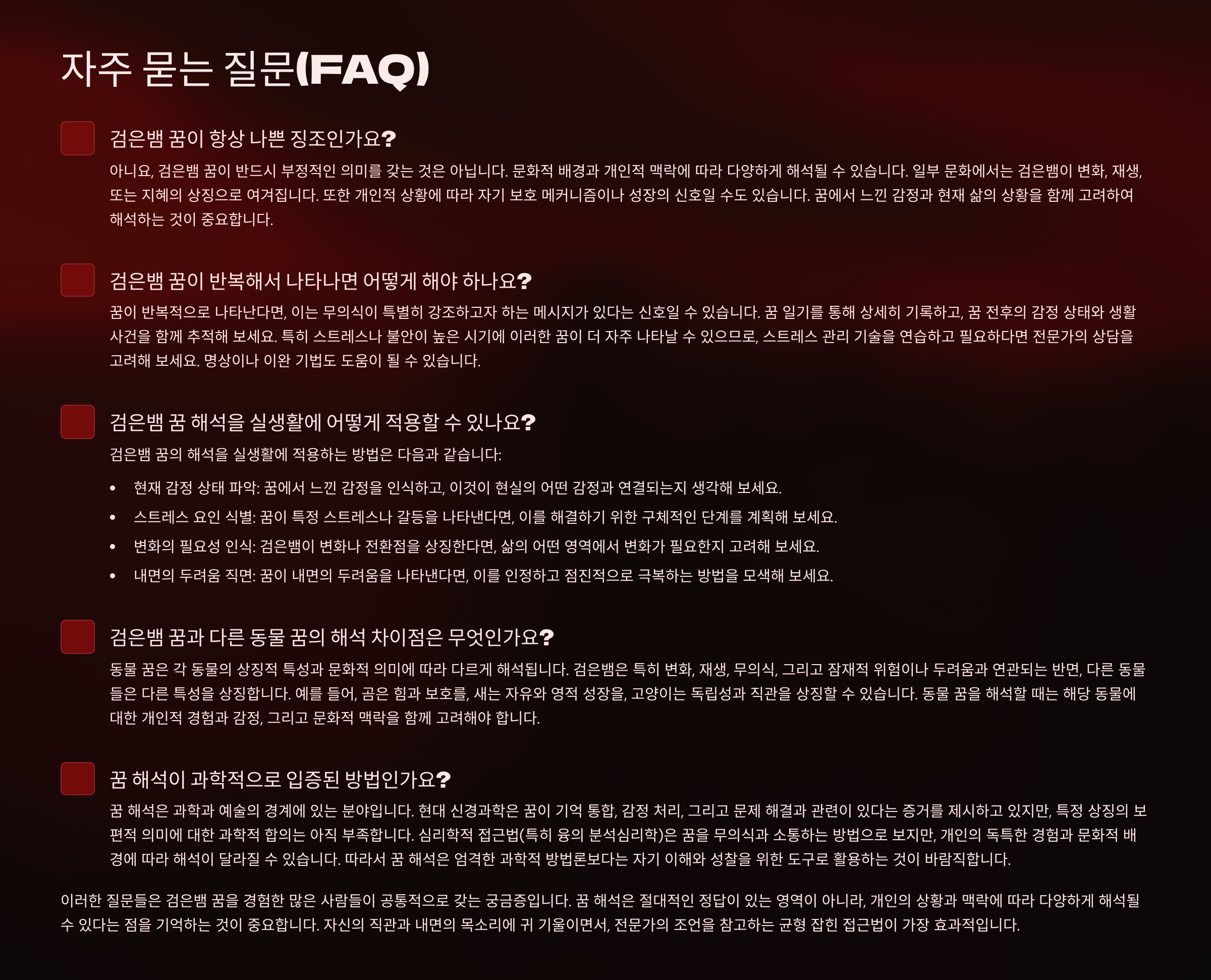 감정 상태 | 검은뱀의 특징 | 해석 포인트 |