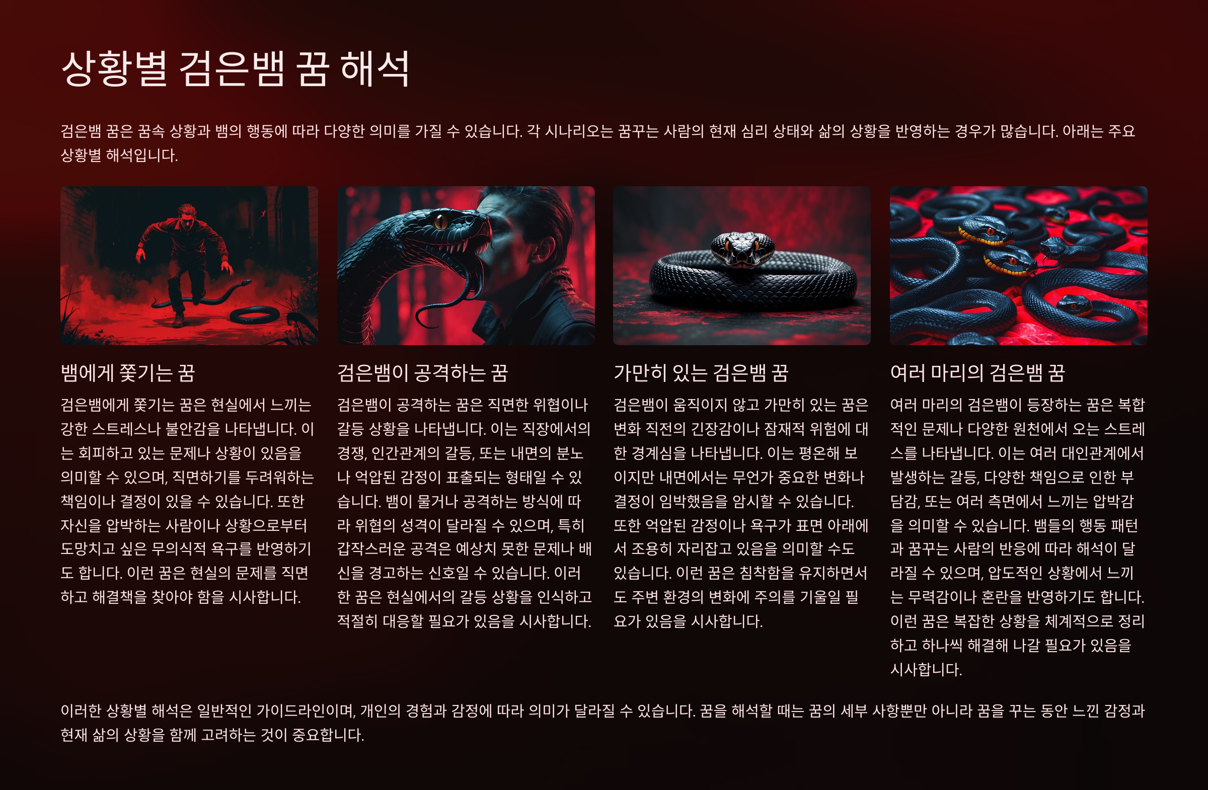 🎬 상황별 검은뱀 꿈 시나리오 분석