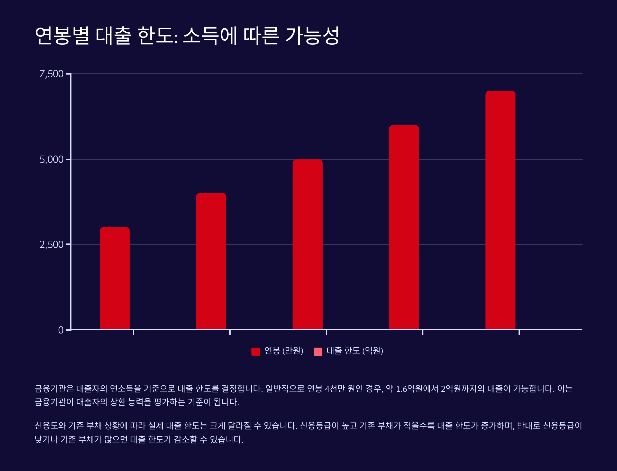 연봉별 대출 한도는 이론적 계산일 뿐이고, 실제로는 여러 변수가 있어요. 신용등급이 낮으면 한도가 줄어들고, 기존 대출이 있으면 더욱 제한적이에요. 또한 직업의 안정성도 중요한 요소인데, 공무원이나 대기업 직원은 유리하지만 프리랜서나 자영업자는 불리해요. 소득 증빙 서류의 종류에 따라서도 인정받는 소득 금액이 달라질 수 있거든요.
