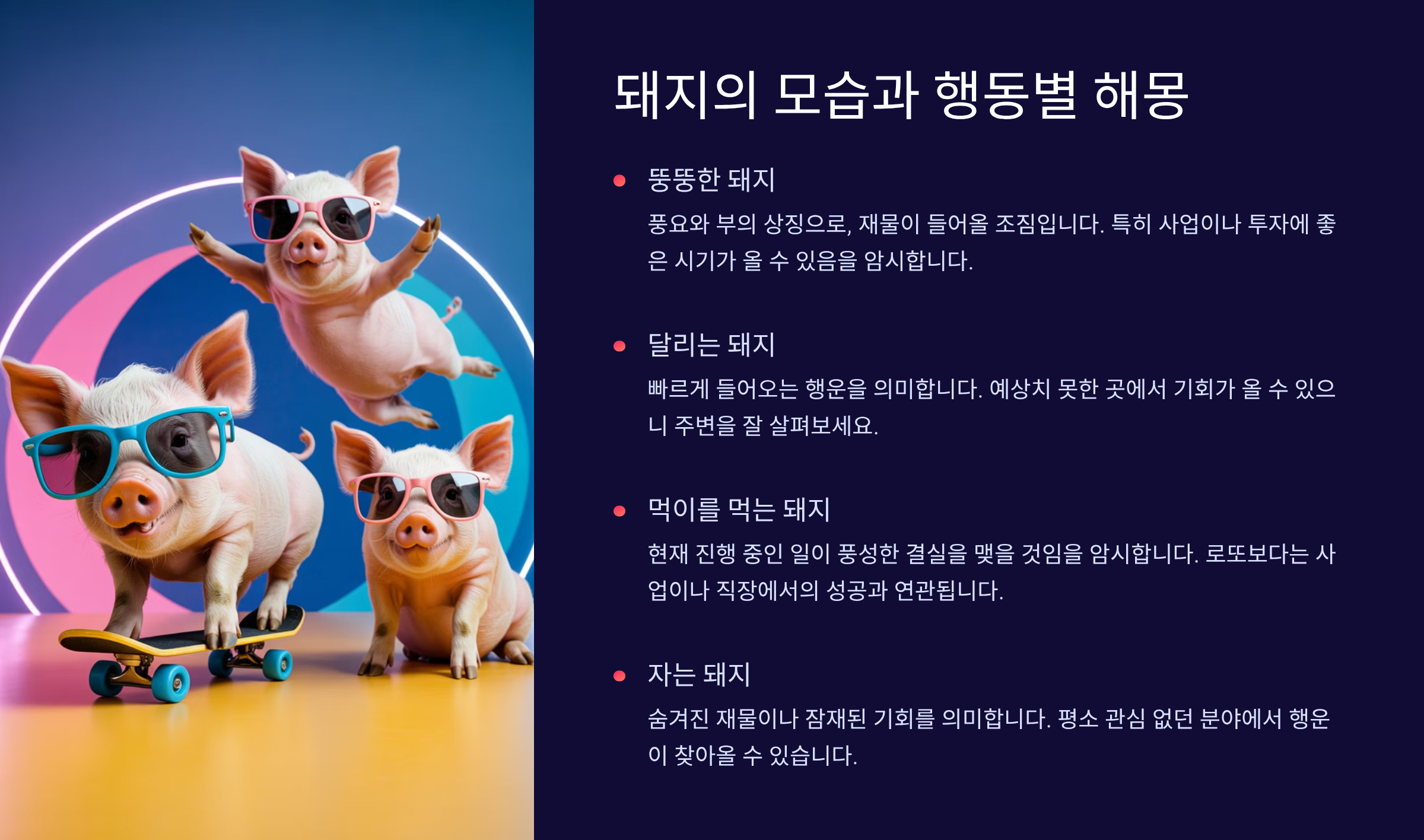 🎨 돼지의 모습과 행동별 해몽